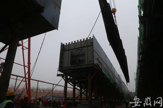 由于引江濟淮工程與G312合六葉公路相交,需新建一座公路橋跨越江淮運河。記者在現(xiàn)場看到,大橋雛形已現(xiàn),工人們正在緊張施工。“G312合六葉公路橋全長280米,總用鋼量達1.6萬噸,橋面總寬52.5米,最大跨度達180米、采用鋼箱梁結構,在同類鋼箱梁中主跨跨度居全國第二、安徽省第一。”中鐵五局引江濟淮項目負責人羅偉平介紹,鋼箱梁由四幅連續(xù)梁組成,每幅鋼箱梁采用100米+180米+100米的三跨結構組成,其中3#、4#連續(xù)梁已于2020年4月份實現(xiàn)合龍。