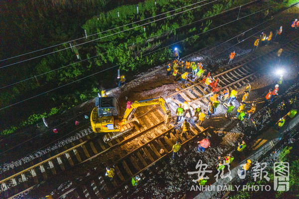 7月29日晚10:20分,寧西鐵路安徽段200余名工作人員隨著施工命令的下達,寧西上行線線路回?fù)苁┕ふ介_始,鋸軌、扒砟、穿滑軌撥移、起道搗固等一系列工序緊張有序展開。