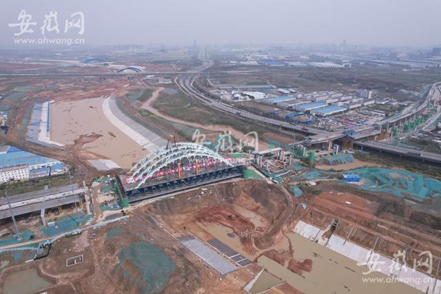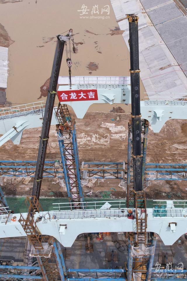 3月27日上午10點(diǎn)多,新安晚報(bào)、安徽網(wǎng)、大皖新聞?dòng)浾咴谝瓭?jì)淮繁華大道橋工程現(xiàn)場(chǎng)看到,主橋拱肋經(jīng)過(guò)吊裝、固定、焊接等流程后,完成了合龍段的施工。