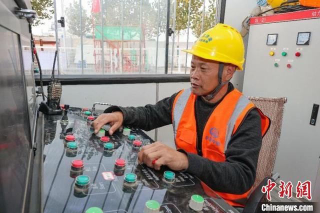 貫通前,工作人員正在觀察頂管機(jī)導(dǎo)向。