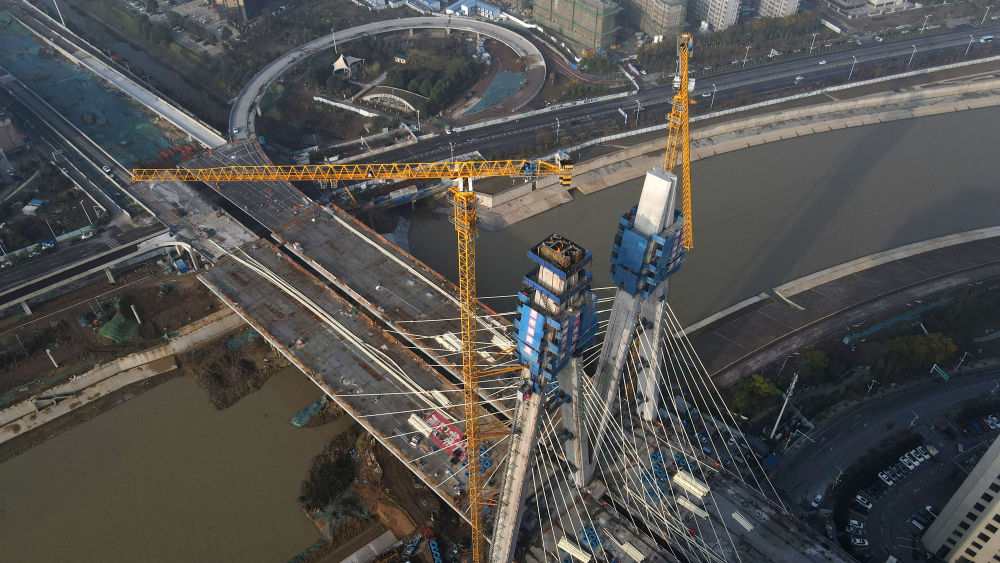 當日,由中鐵四局承建的引江濟淮工程江淮溝通段金寨南路橋主塔封頂。該橋跨越引江濟淮工程航道,全長635米,設計為獨塔斜拉橋,此次封頂?shù)闹魉?12米。引江濟淮工程溝通長江、淮河兩大水系,是我國跨流域、跨省重大戰(zhàn)略性水資源配置和綜合利用工程。