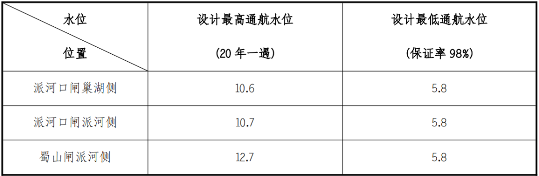 東淝河、蜀山、派河口船閘級別均為Ⅱ級,設(shè)計(jì)船舶噸級為2000噸級,閘室有效尺度280×23×5.2m(長×寬×門檻水深)。