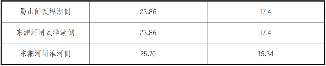 注:表中高程均采用1985國家高程基準(zhǔn),單位為米。
